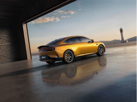 外观设计以雕塑般的线条,打造“静则优雅,动则凌厉” 的原创造型。自信的“鲨鱼鼻”前脸、利落舒展的掀背轮廓,以及饱满有力的肩线,共同塑造出蓄势待发的运动姿态。纯粹而统一的设计语言,在运动张力、优雅气质与科技表达之间,达成恰到好处的平衡。
